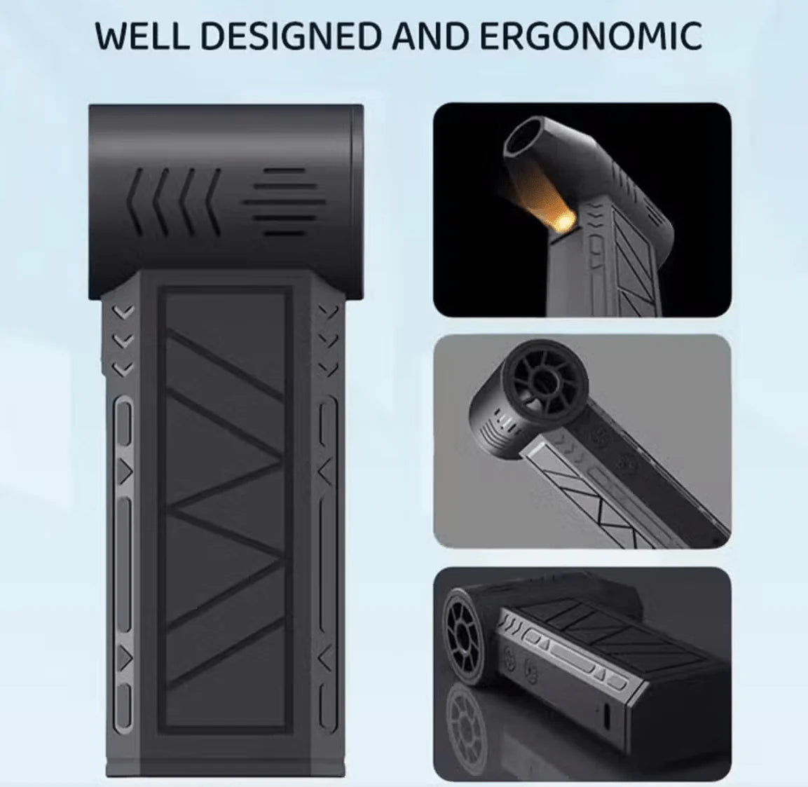 Mini Jet Fan Blower – A compact, handheld electric blower with powerful airflow and a built‑in LED light, ideal for dust removal, BBQ fire starting, and outdoor combustion assistance.